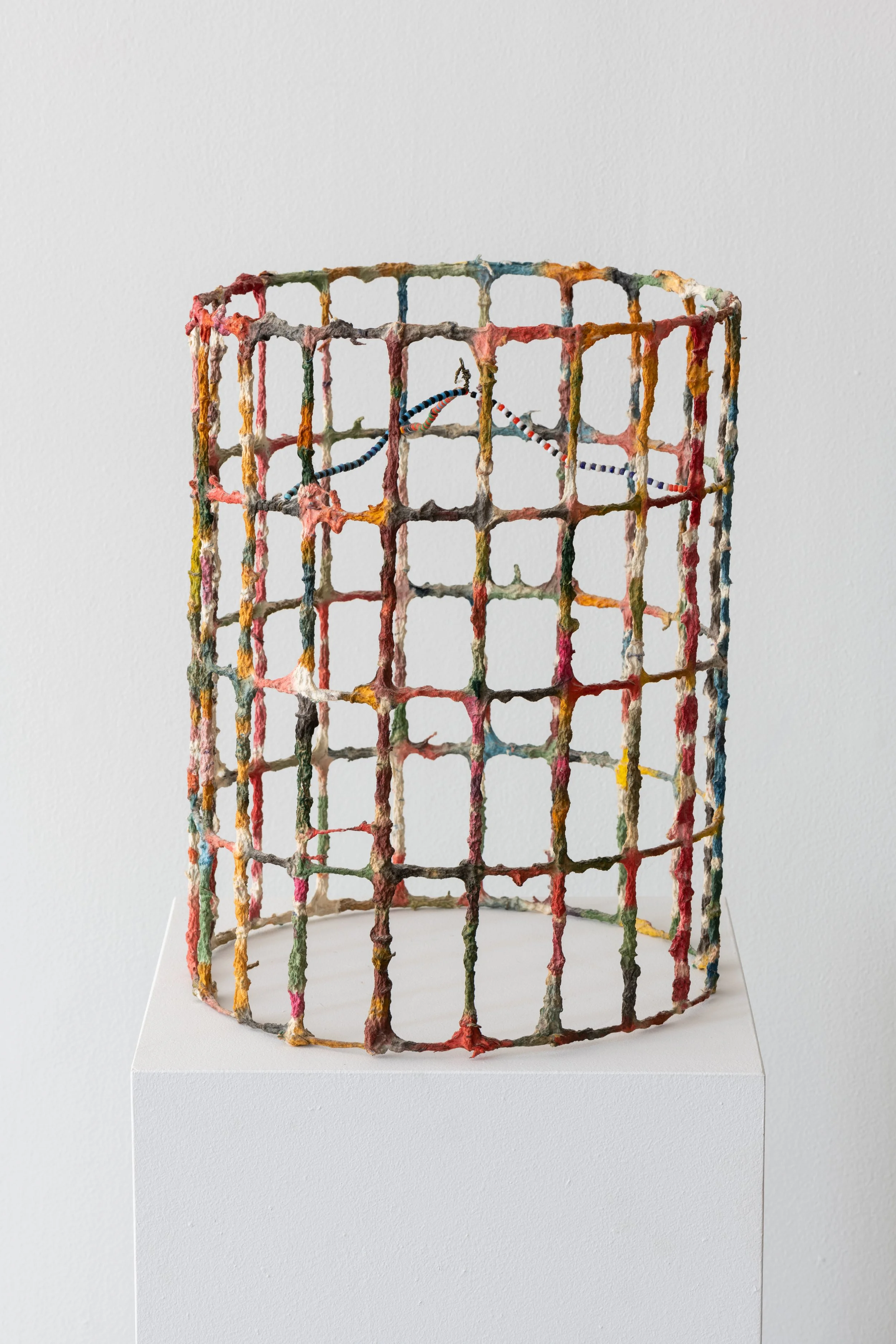 Growing up in the rural farming community of Herington, Kansas, Shields learned to hunt, fish, and garden, activities he would pursue throughout his life. At home, his mother and sisters taught him to sew, a skill that would directly contribute to many of his later artistic innovations. Although he took several studio art courses in college, Shields was mostly self-taught, and left school without completing a major. In the late 1960s, the young artist moved to New York City where his early experiments with three-dimensional painting earned him a spot on the revered roster at Paula Cooper Gallery, where he showed regularly through the early 90s. This context is important in understanding Shields’ contact with and divergence from the milieu of New York Minimalism. Alongside his peers and roster-mates such as Donald Judd and Sol Lewitt, Shields pursued a deep investigation of geometry and abstraction. Yet where the coolly intellectual approach of his contemporaries tended towards monochromatic aesthetic reduction, Shields' process of intuitive, spontaneous discovery thrived on visual abundance. Where the Minimalists insisted on the fixed, elemental primacy of the grid, Shields handled the grid as a mutable object: its static rhythm subdivided into syncopation, pierced with dynamic irregularities, or twisted into hyperbolic structures. For Shields, the grid was a flexible lattice upon which a garden of visual complexity could flourish.