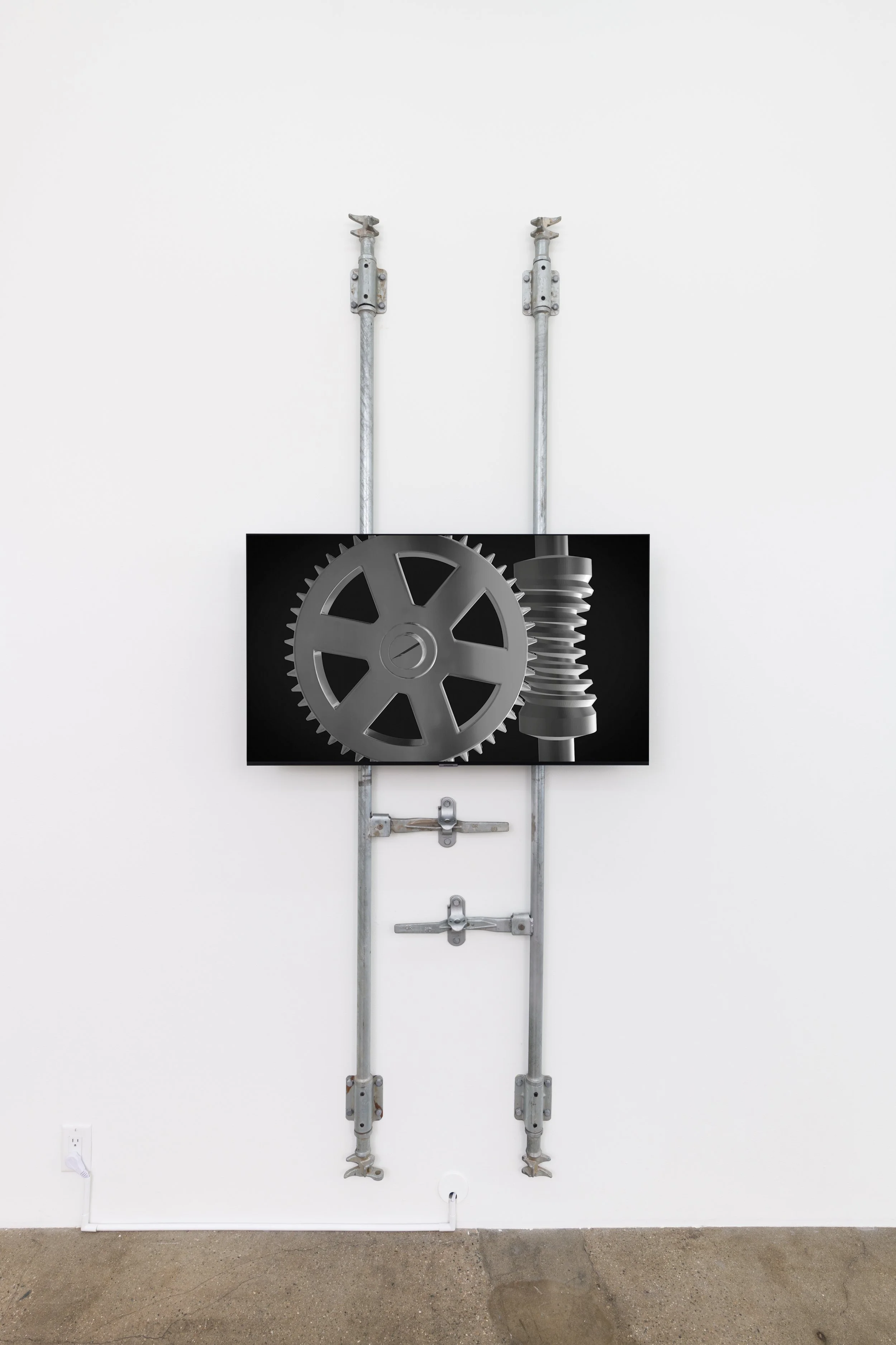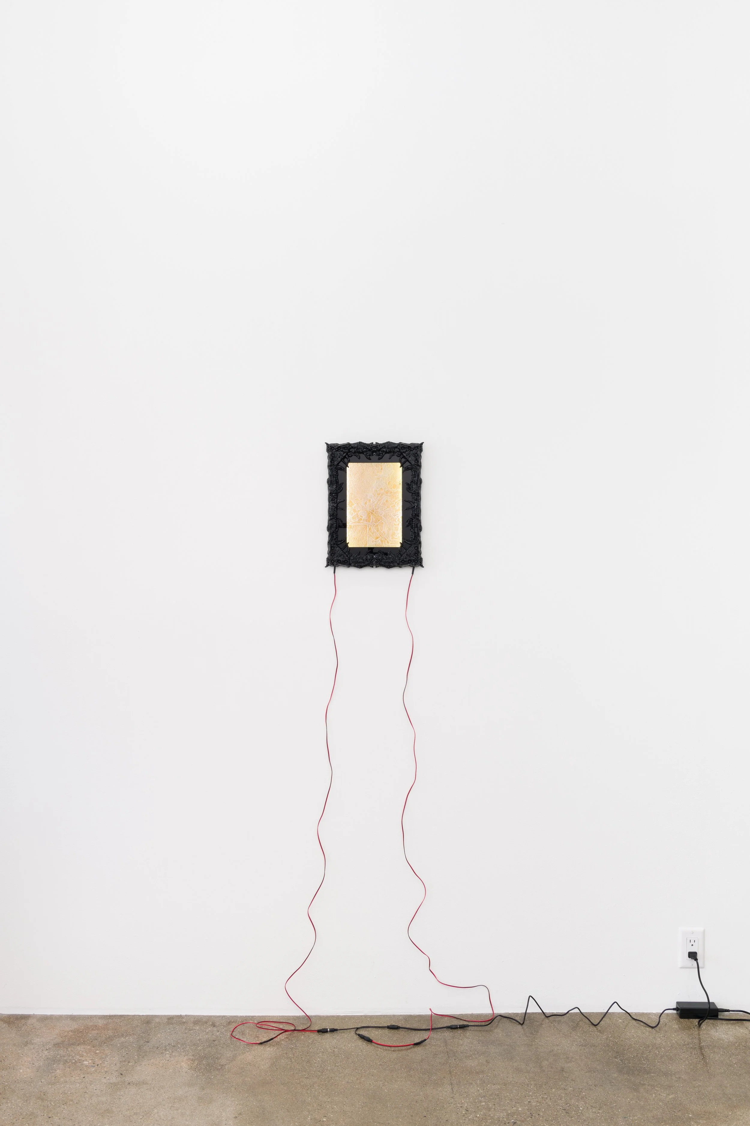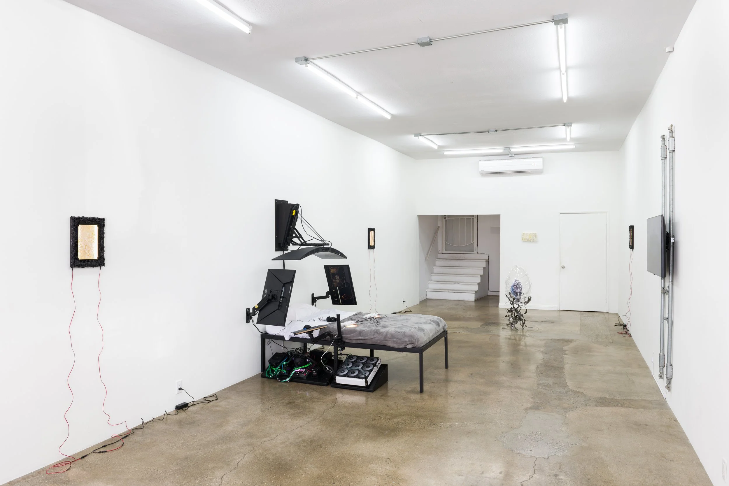 Klammern aus denen Blätter Spriessen assembles a group of artists who have independently sought to investigate different strains and subcultures of escapism, found in DIY maker movements, mysticism, gaming culture, biotechnology, virtual reality and the extension of bodily formations through social and scientific techniques. Showing in this ensemble for the first time, Colleen Hargaden, Filip Kostic, Yein Lee, Andrew Rutherdale and Jonas Schoeneberg venture out of their studios in Berlin, Los Angeles, Montreal and Vienna to open up their practices to mutual encounters, allowing their perspectives and interests to intersect, converge and enter into conversation with one another. Together they offer conceptual variables to understand situations excluded from normative notions of the real. Like the seemingly irreal scenario of “brackets, from which leaves sprout” (Klammern aus denen Blätter Spriessen), alternate patterns and cognitive abilities emerge from which to think anew the escape button commonly associated with configurations of virtual reality. If one of these pathways was projected in spacetime, it would read: “Once you’ve made a gateway of brackets, slipping into the embrace between them, you unlock the control console and peer into its memory slot. There. Expect a beautiful but unreal setting.”