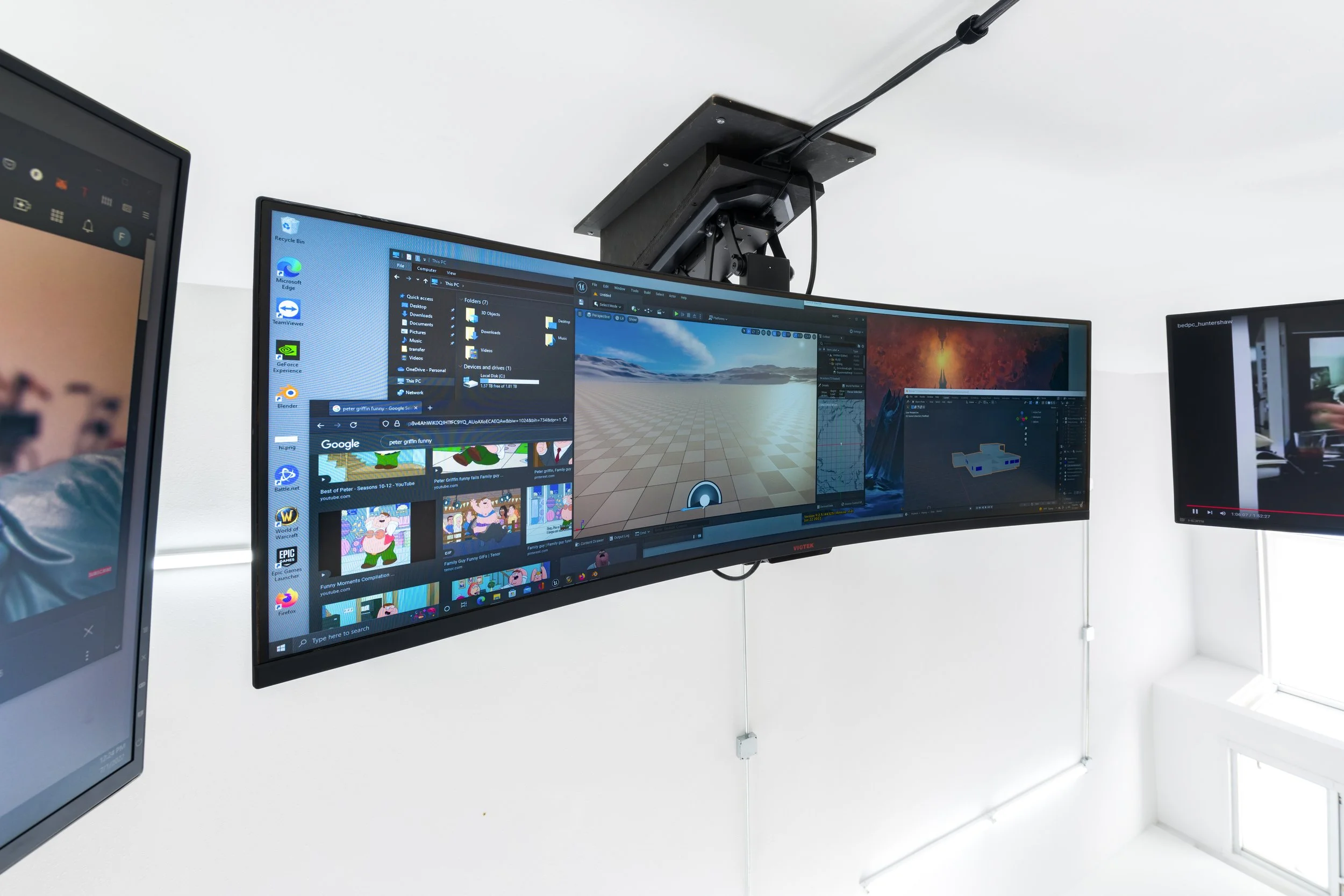 LEFT MONITOR (radiating light waves down from above)