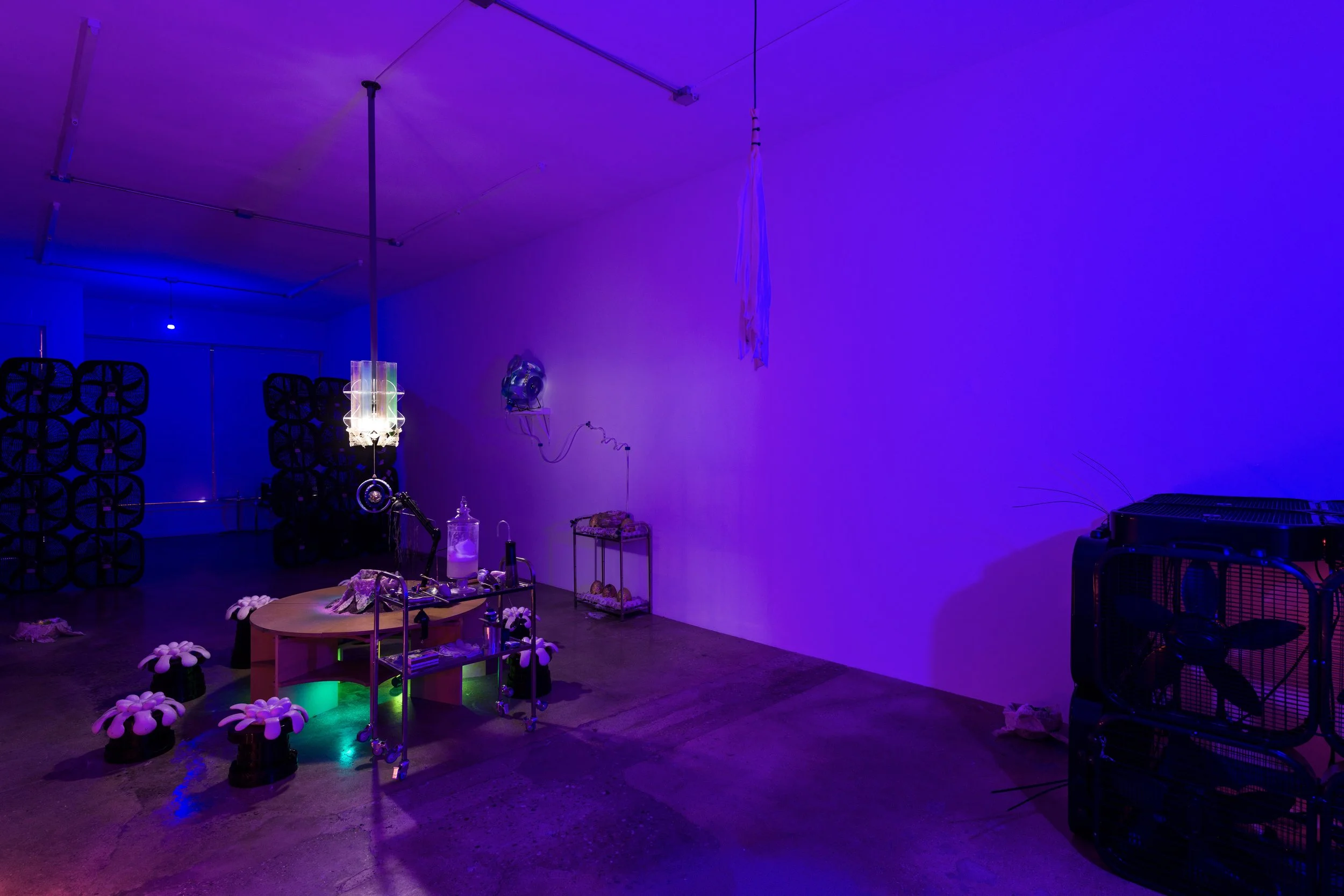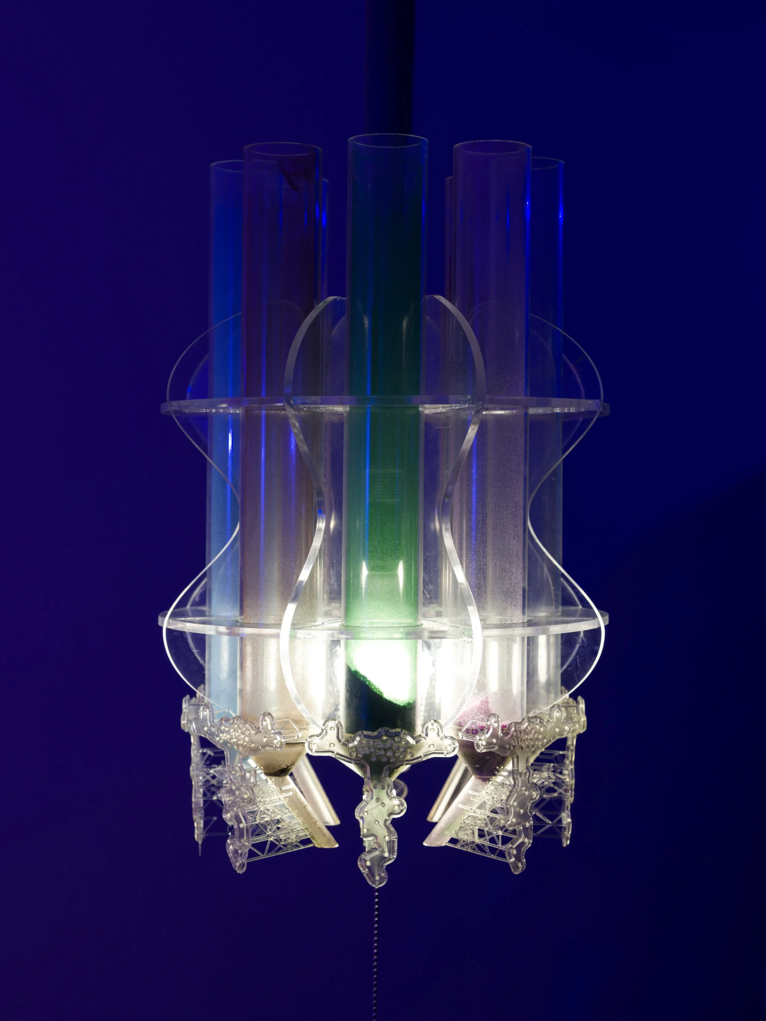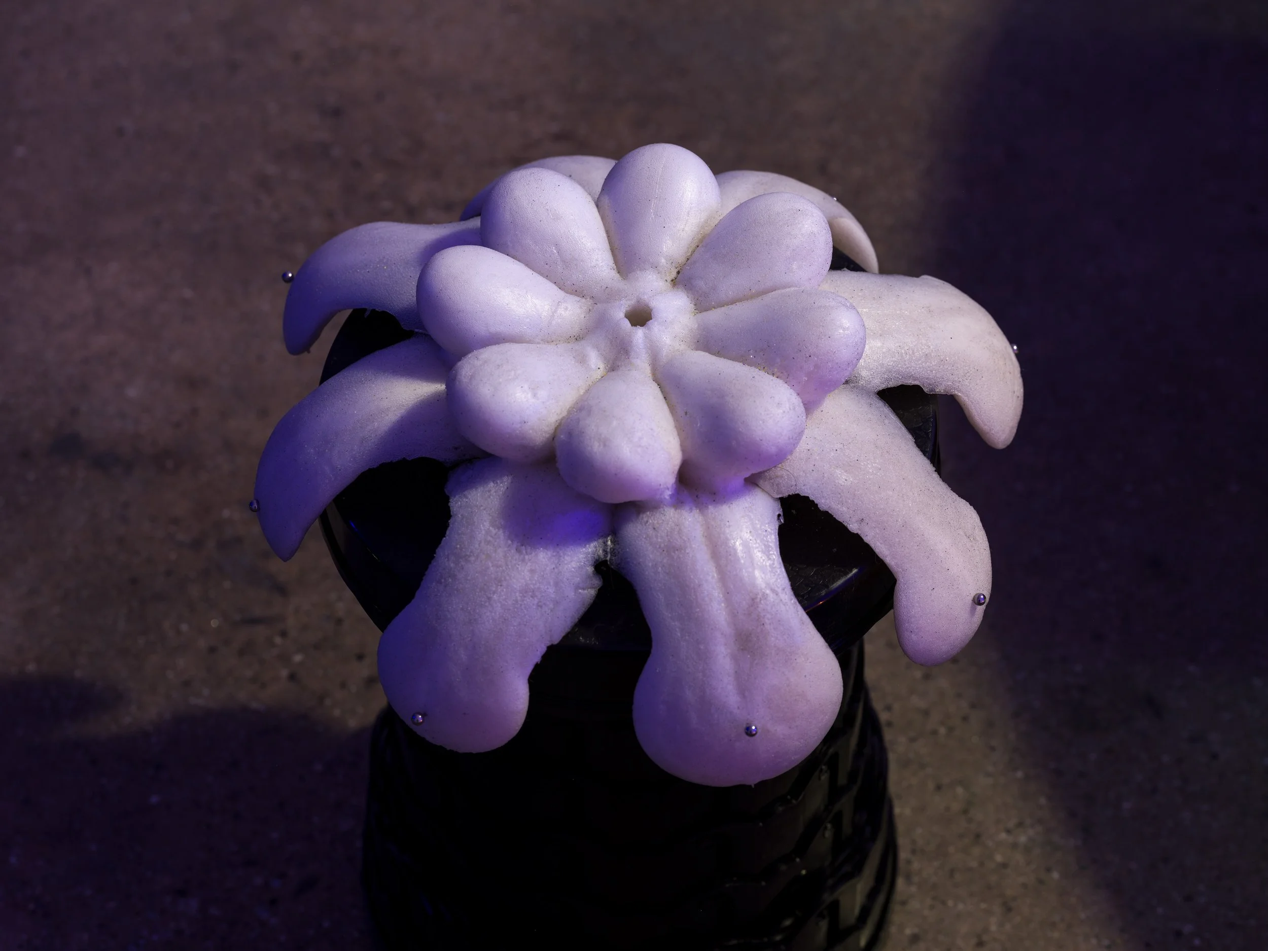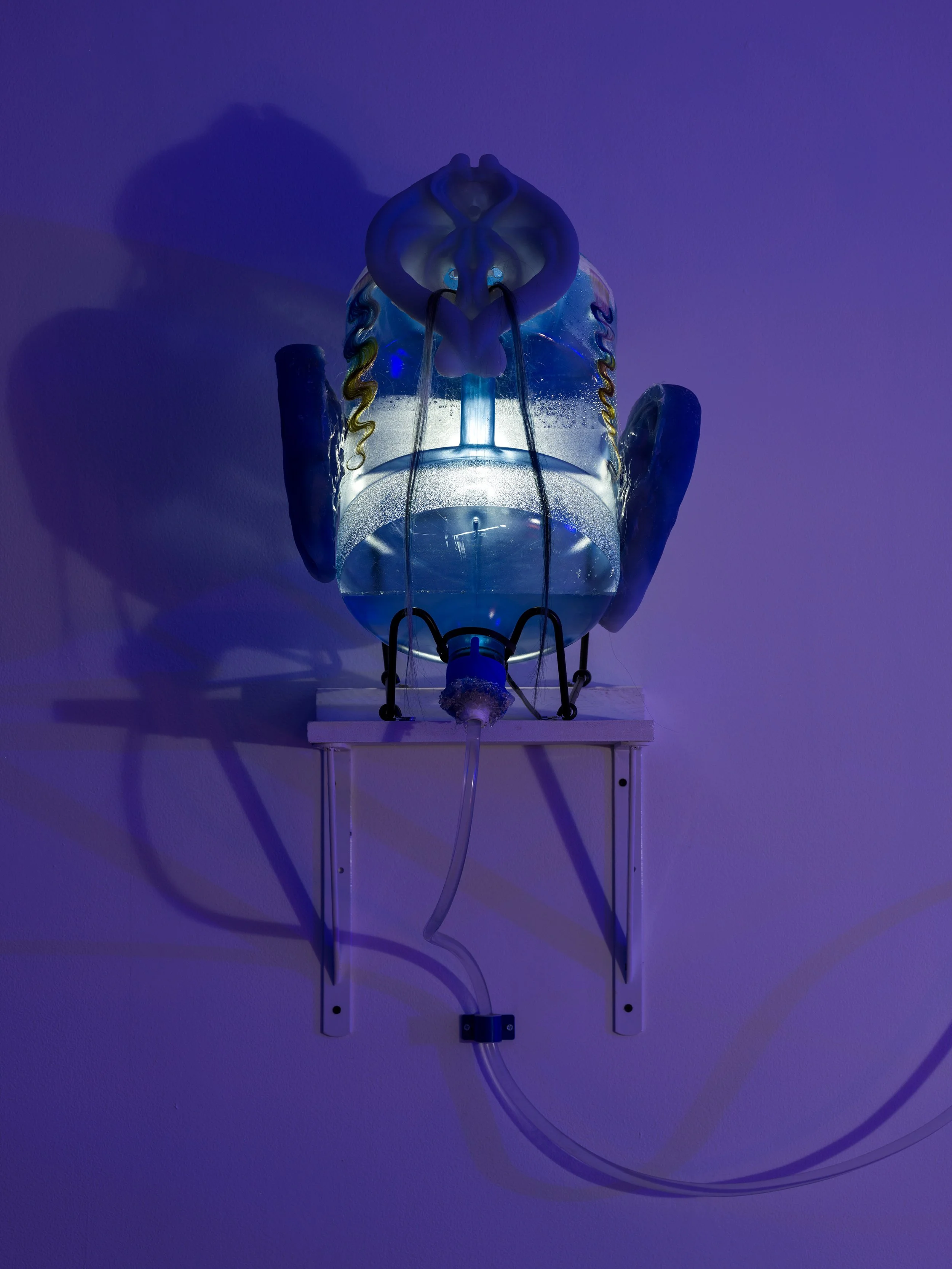 Activating a system of custom-fabricated objects and furniture, HATCHLING intertwines the sonic, visual and tactile into a synaesthetic gestalt of alien stimulus. With minimalist choreography, Mrs. Jug leads the audience through a sense-melting sequence of elemental rites to bring forth the hatchling from its egg. Devotional but not religious, HATCHLING is an onomatopoeia: each event is a direct source of meaning, engaging a language not of symbolism but of sensation.